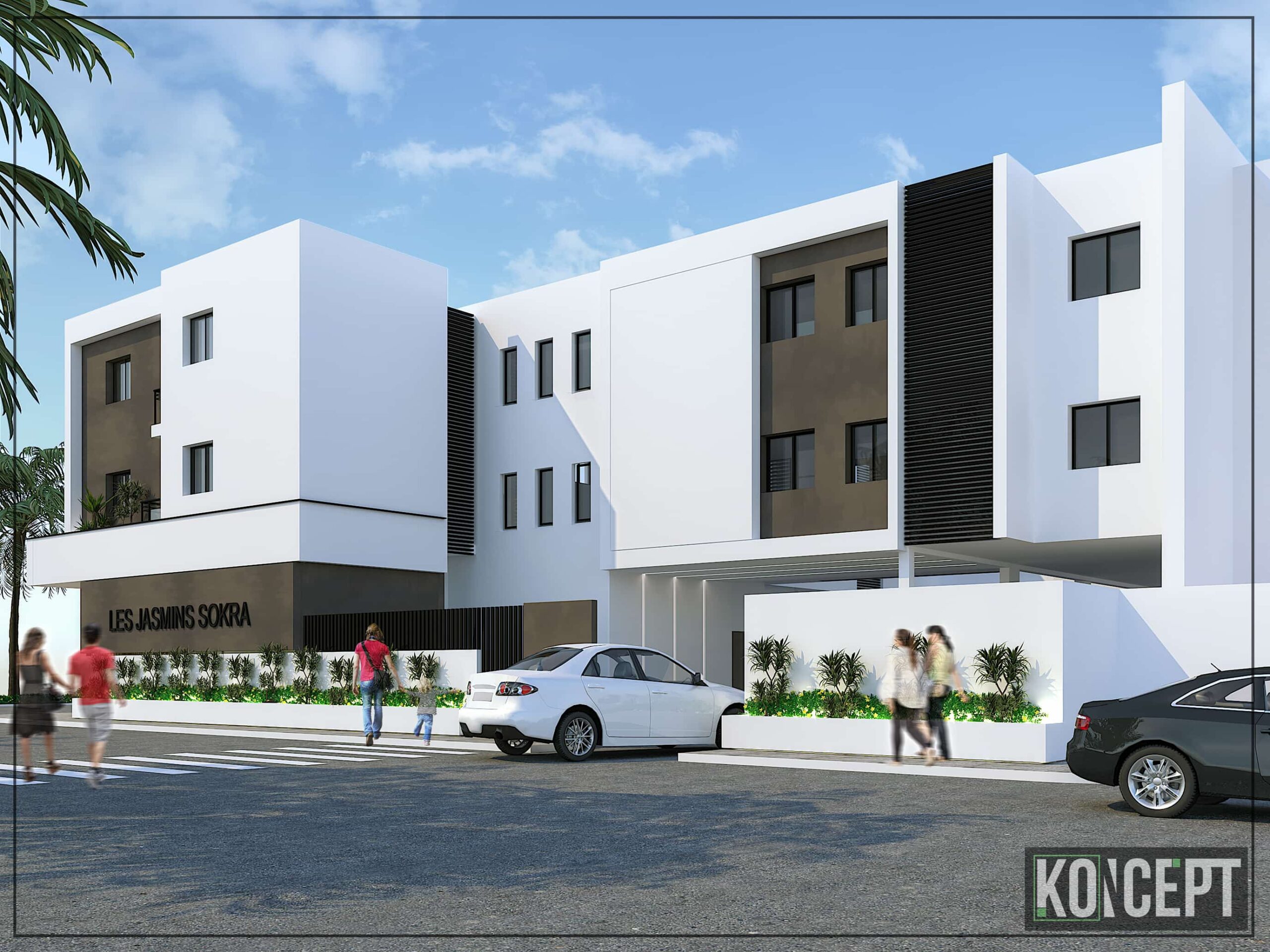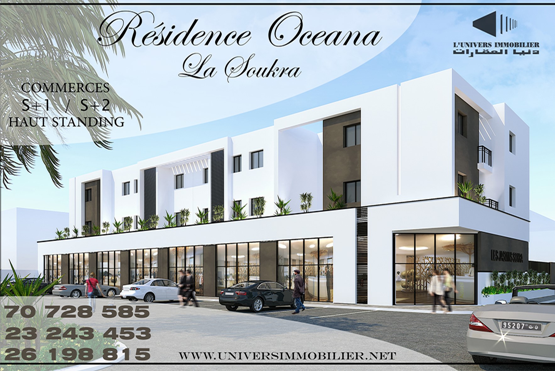 Il s’agit d’un ensemble résidentiel et commercial en cours de réalisation dans la zone Est de la Soukra donnant directement sur la rue du Parc passant devant le Parc d’animation et le siège de la Municipalité de la Soukra.